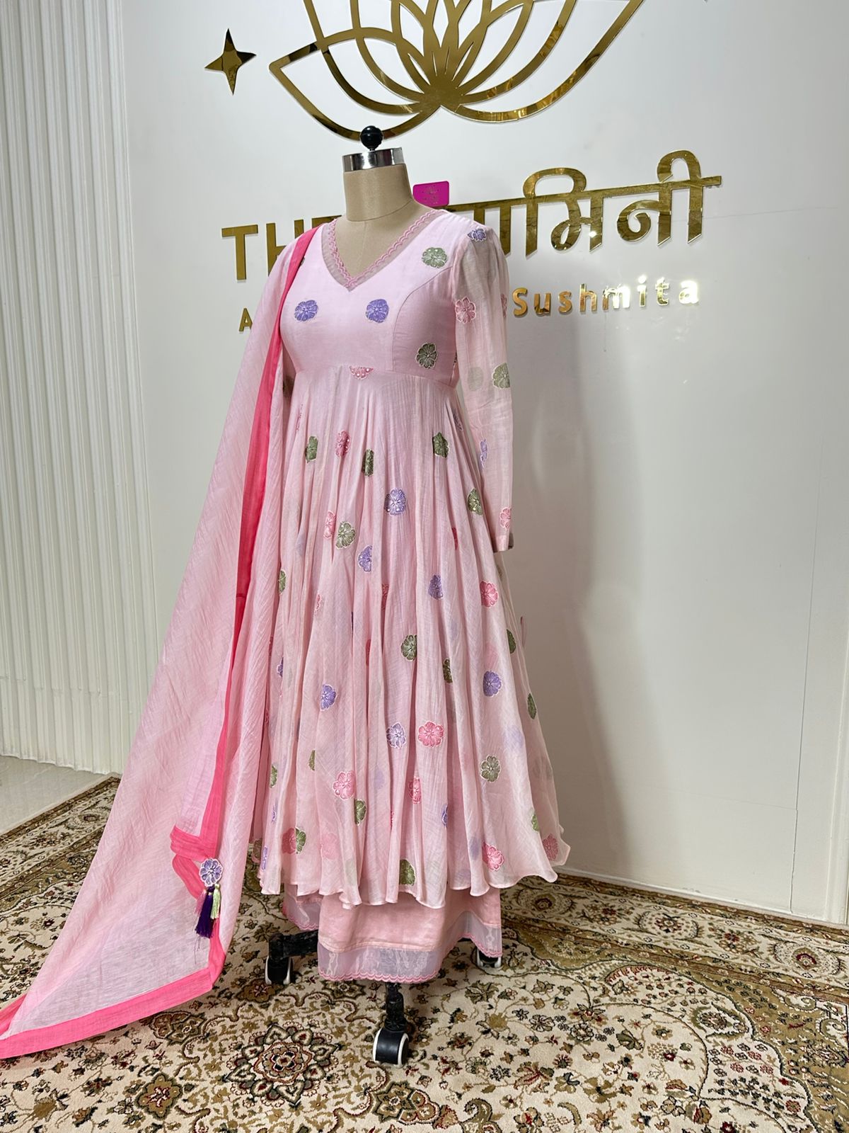 The soothing baby pink hue adds a touch of femininity and charm, making it an ideal choice for casual outings, festive gatherings, and daytime celebrations. The lightweight Mal Chandari fabric ensures breathability and comfort, keeping you stylish all day long.