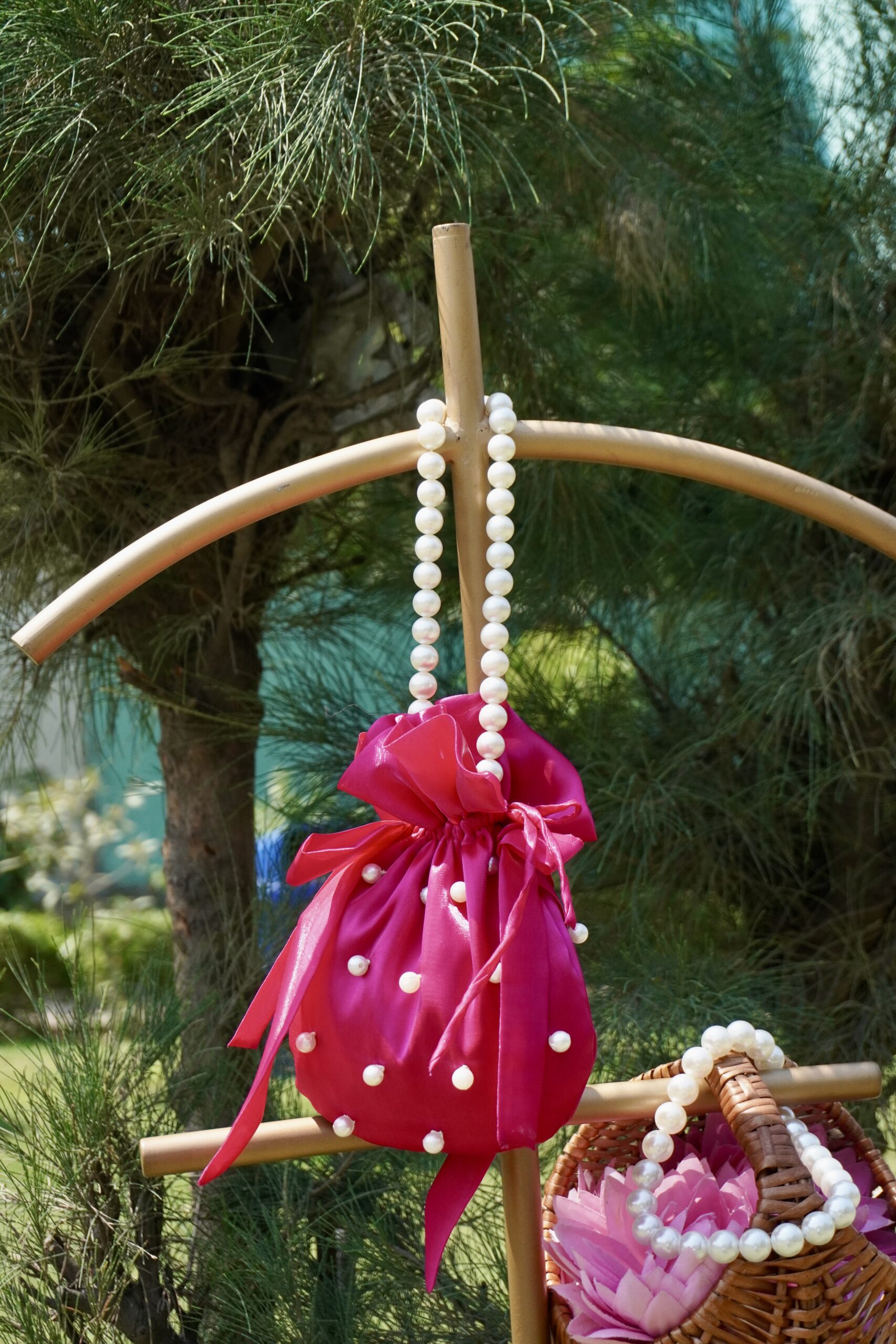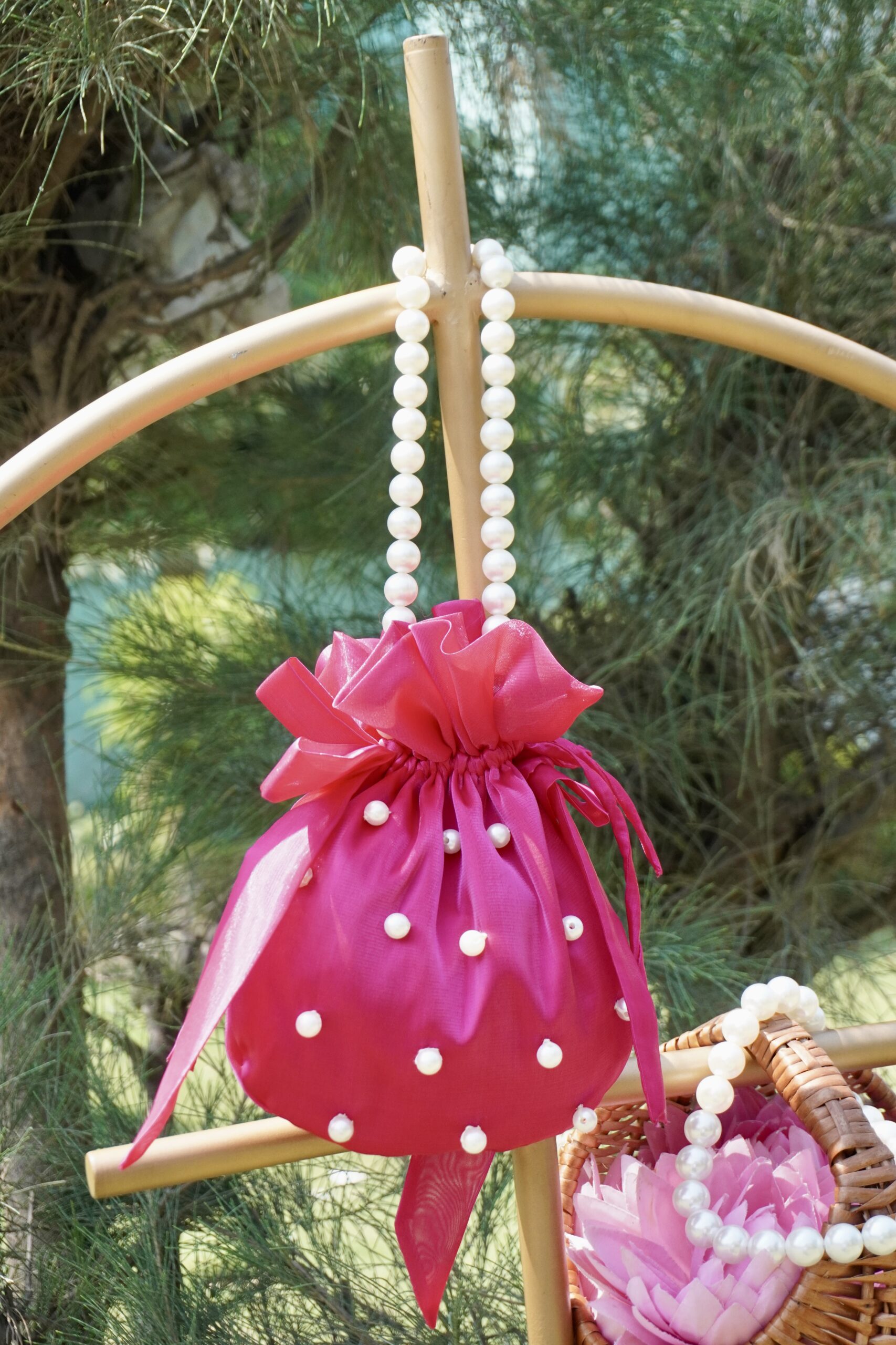Whether you are a bride, bridesmaid, or wedding guest, this designer potli completes your look effortlessly.